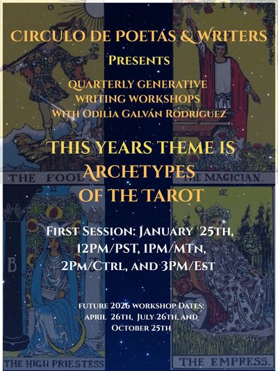 Please join us for a series of complementary quarterly generative writing workshops on Zoom with Círculo Board Member Odilia Galván Rodríguez.